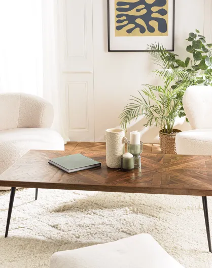 Table basse rectangle bois recyclé pieds métal Kiara bois - 135x70x40 cm