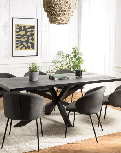 Table à manger plateau effet pierre Basile noire - 220x110x76 cm