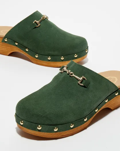 Sabots en Velours de Cuir Nala kaki - Talon 5 cm