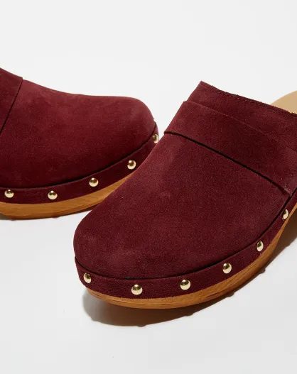 Sabots en Velours de Cuir Sofia bordeaux - Talon 5 cm