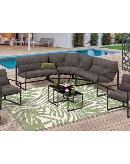 Salon de jardin d'angle Tropéa 8 places en métal et cordage gris