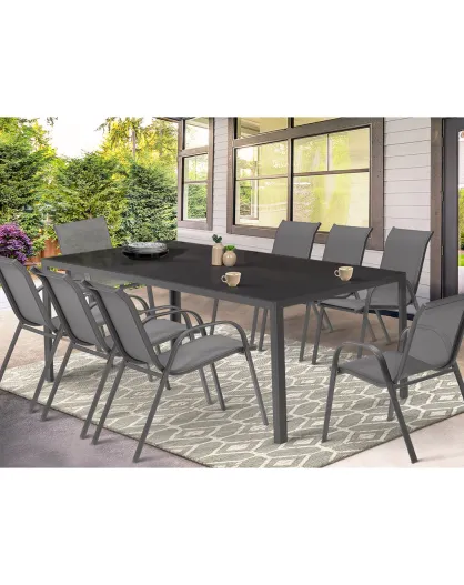 Salon de jardin Minorca 8 places en textiléne et verre trempé gris anthracite
