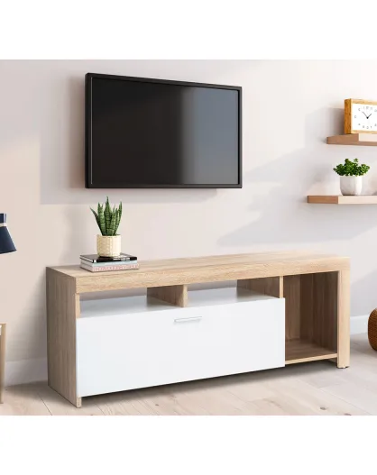 Meuble TV Maryse blanc/bois - 110x40x45 cm