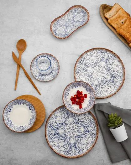 Service petit déjeuner en porcelaine - 26 pièces bleu/marron/blanc