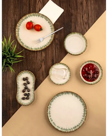 Service petit déjeuner en porcelaine- 26 pièces vert/marron/blanc