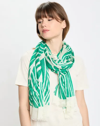 Foulard Claire imprimé troppical vert emeraude - 70x180 cm