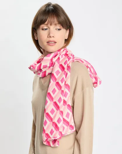 Foulard Adel imprimé graphique rose - 105x180 cm