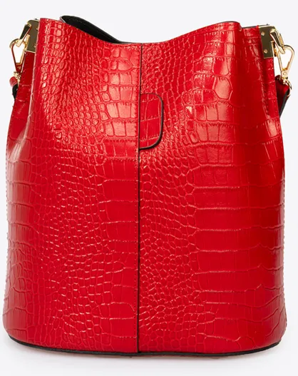 Sac seau en Cuir Caprice rouge - 28x10x26 cm