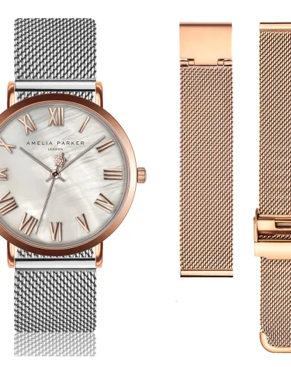 Set Montre Femme 2 Bracelets Classique en Acier argenté/rose doré