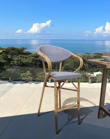 2 Fauteuils bar textilène naturel/bleu - 57x41x112 cm