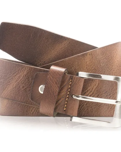 Ceinture ville bord surpique boucle rectangle Lysiane tabac