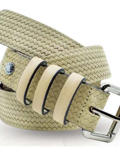 Ceinture en Cuir & Croute de Cuir beige