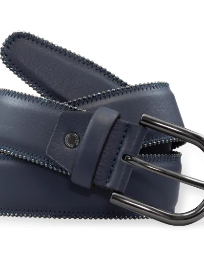 Ceinture en Cuir & Croute de Cuir bleu jean