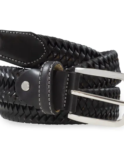 Ceinture en Cuir & Croute de Cuir noir/bordeaux