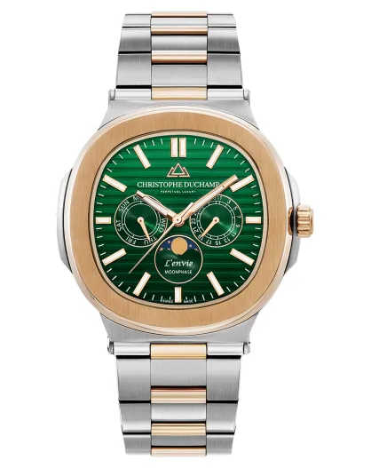 Montre Homme Quartz en Acier L'Envie Moonphase argenté/doré rose