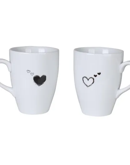 2 Mugs en Porcelaine blanc/noir - D.8 cm