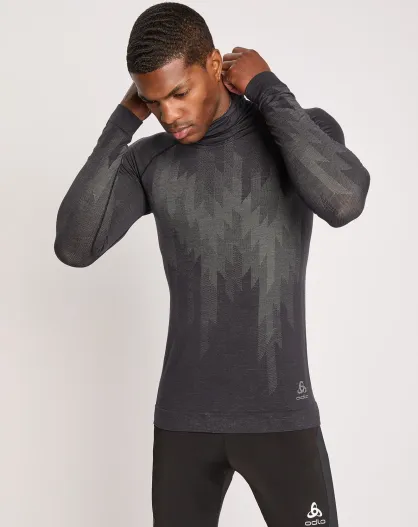 T-Shirt technique en Laine mélangée avec protection faciale Kinship Performance Wool Warm noir mélangé