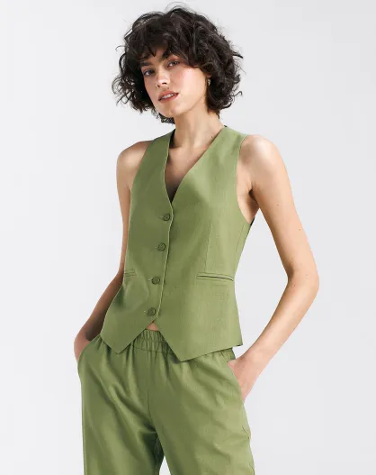 Gilet sans manches en Lin mélangé Loisir vert