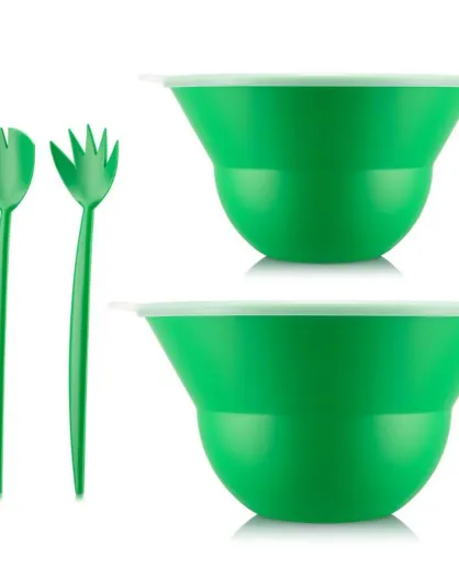 2 Saladiers avec couvercle & Couverts à salade Topee verts