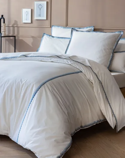Parure housse de couette en Percale de Coton Alcott blanc/bleu
