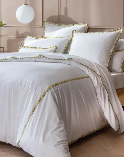Parure housse de couette en Percale de Coton Alcott blanc/doré