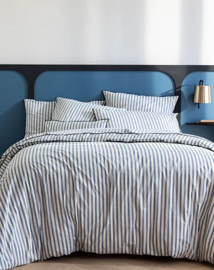 Parure housse de couette en Percale de Coton Allen blanc/bleu