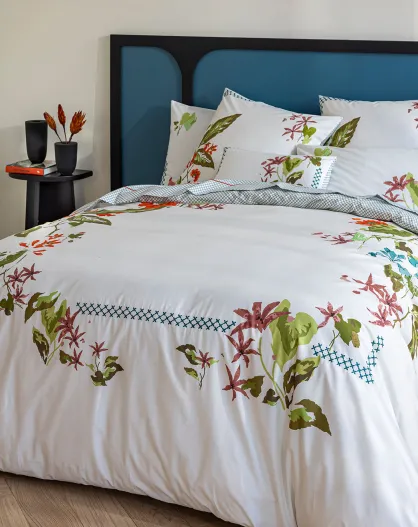 Parure housse de couette en Percale de Coton Granada blanc/vert