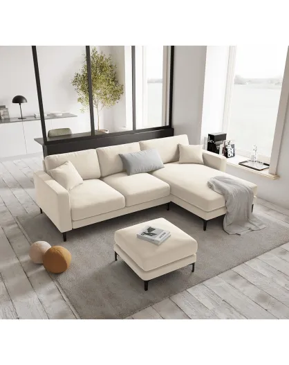 Pouf velours Aster 1 place Beige Clair - 102x80x43