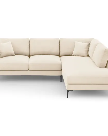 Canapé d'angle Droit Velours Venus 5 Places beige clair - 254x185x90 cm