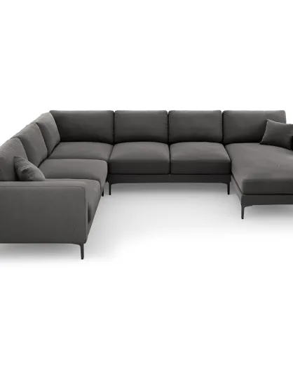 Canapé Panoramique gauche Velours Venus 6 Places gris - 326x236x90 cm