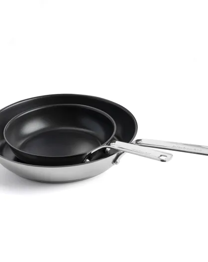 2 Poêles acier inoxydable revêtement céramique induction argenté/noir - D.20/D.28 cm