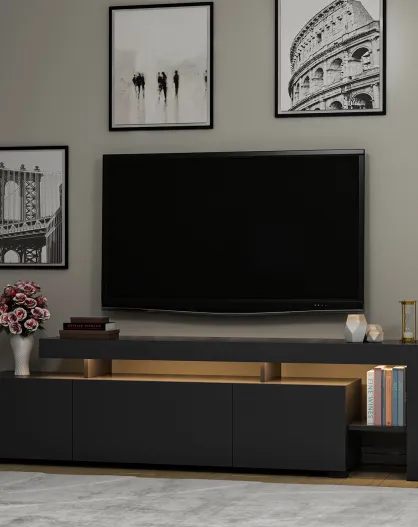 Meuble TV Beliz anthracite - 192x53x37 cm