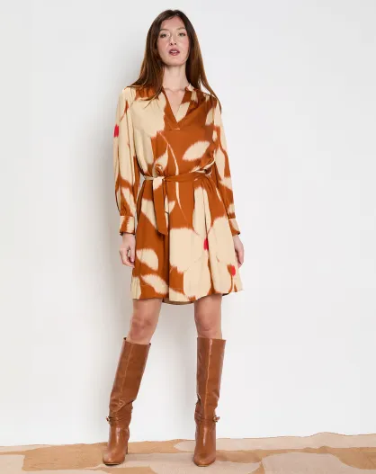 Robe Sybil imprimée cognac