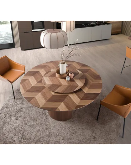 Table à manger ronde avec plateau fixe noyer - D.150x76 cm