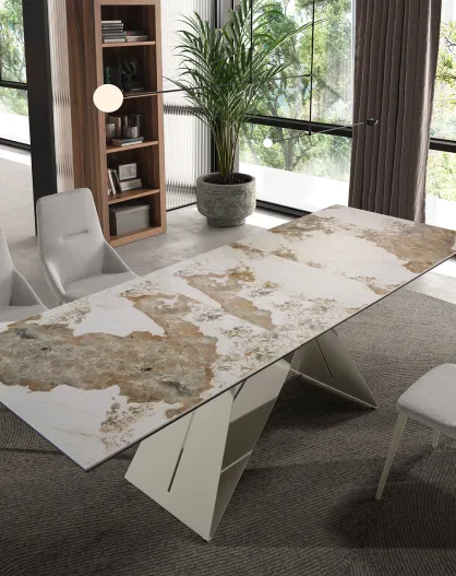 Table à manger à rallonge avec plateau en marbre de porcelaine blanc/doré - 180x90x76 cm