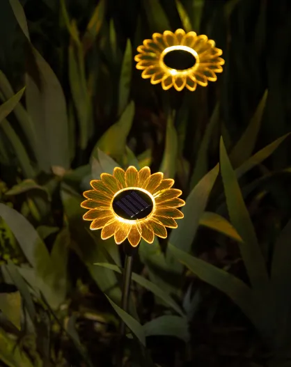 Décoration à énergie solaire Tournesol noir/jaune - 44/37.5xD.11.3 cm
