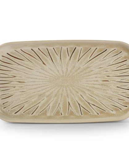 4 Assiettes rectangulaires en Porcelaine Orion blanc/brun - D.25 cm