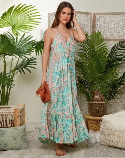 Robe 100% Soie Fabiola verte