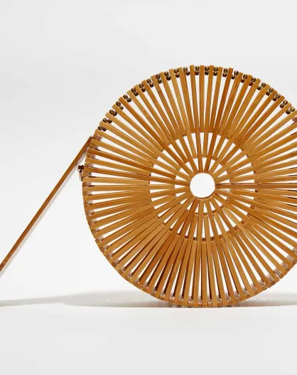 Sac à main en Bambou Souris beige - 27.5x23.5x8 cm