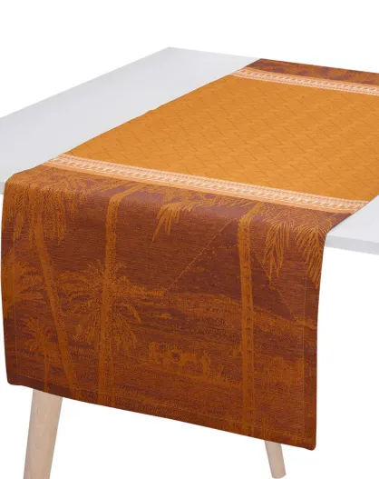 Chemin de table 100% Lin Croisière sur le Nil Désert orange - 50x150 cm