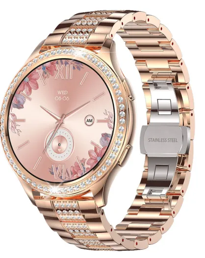 Montre connectée -edition Vogue 2024 IP67 avec bracelet en acier inoxydable dorée