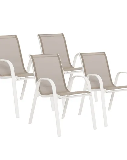 4 Chaises de jardin empilables en textilène blanc/beige - 51.5x68x84 cm
