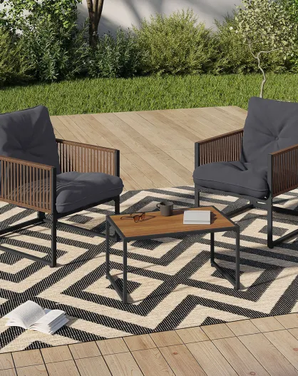 Salon de jardin Ozéa 2 places en métal gris anthracite/rotin