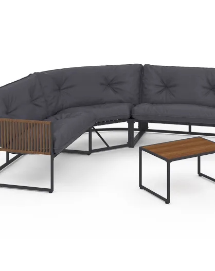 Salon de jardin d'angle Ozéa 6 places en métal et cordage gris anthracite/rotin