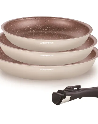 3 poêles + 1 poignée Amovible induction crème