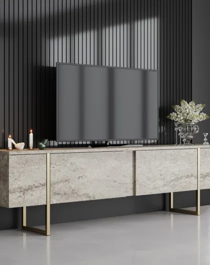 Meuble TV Luxe travertin/doré - 180x30x50 cm