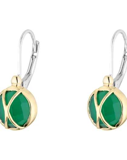 Boucles d'oreilles en Argent, Laiton & Onyx vert