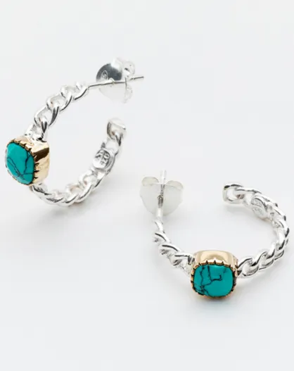 Boucles d'oreilles en Argent, Laiton & Turquoise reconstituée