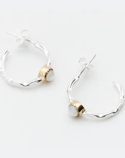 Boucles d'oreilles en Argent, Laiton & Nacre blanche