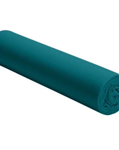 Drap housse en percale de coton lavé bonnet 30 cm bleu canard